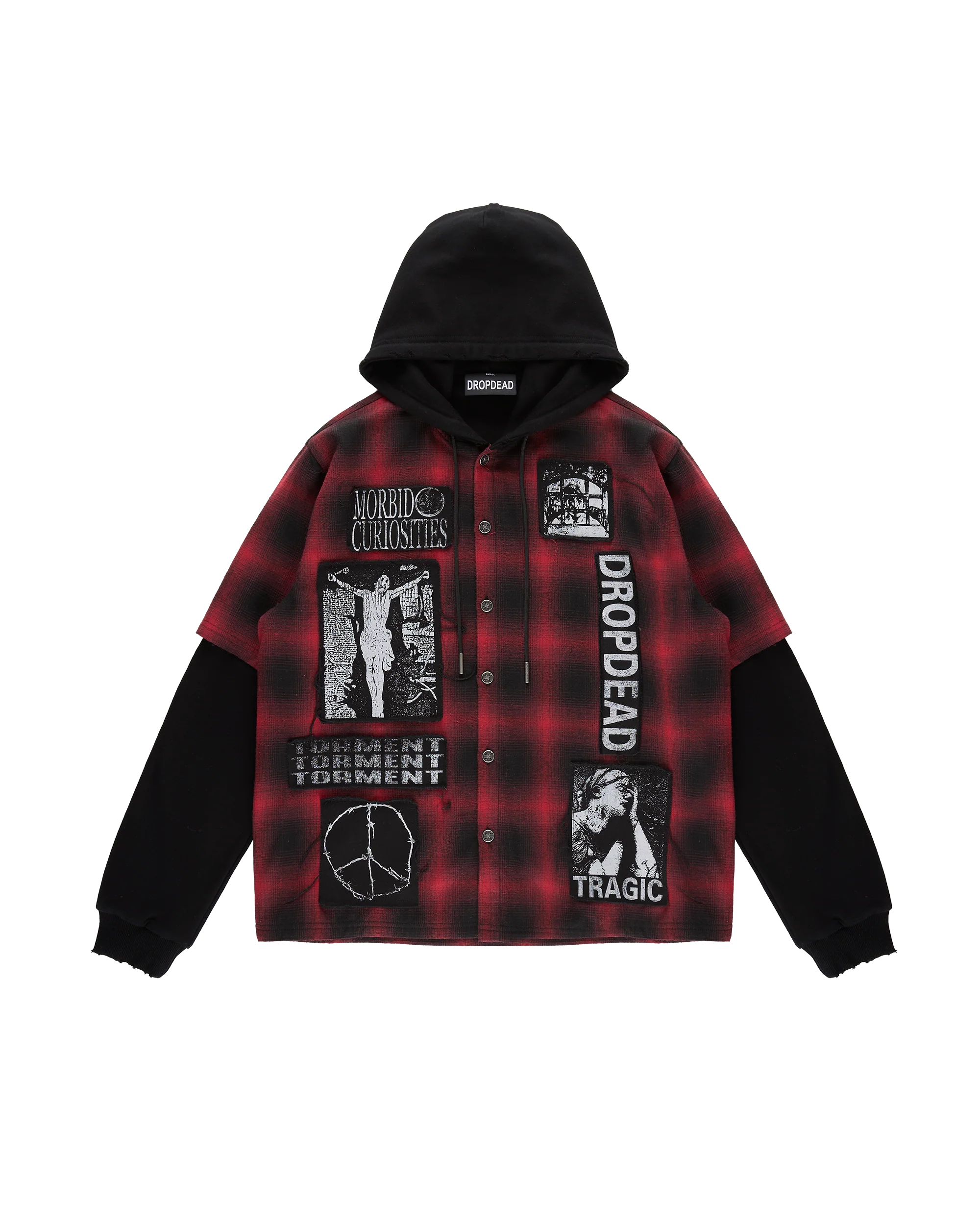 - Layered plaid shirt hoodieÂ
